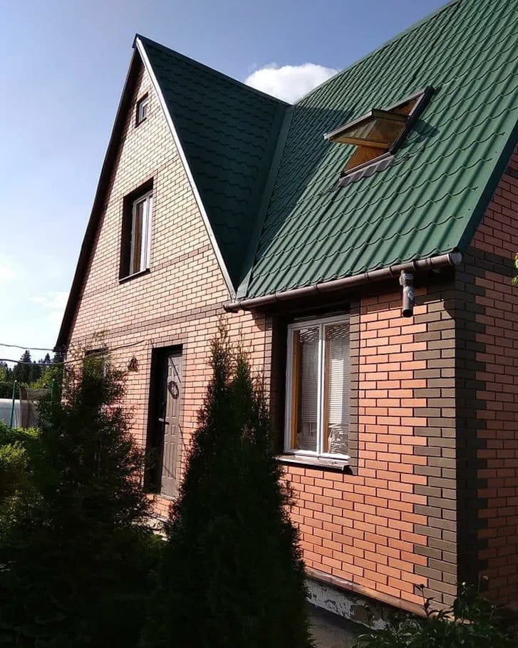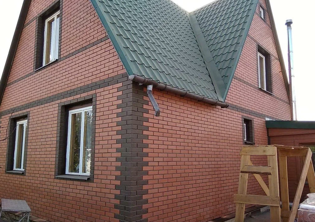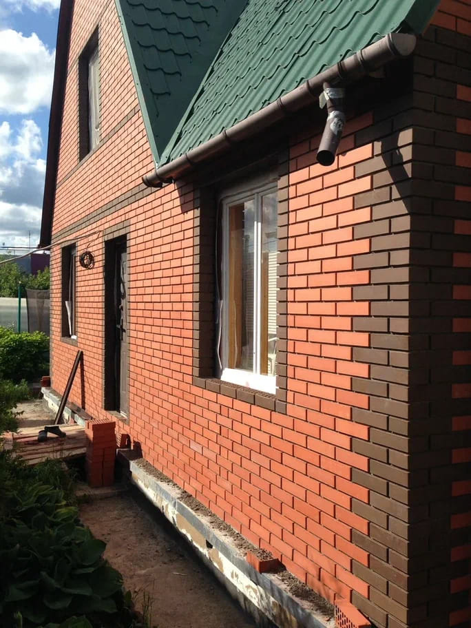 Загородный дом с облицовкой кирпичом Вышневолоцкая керамика Красный гладкий 1НФ