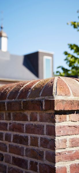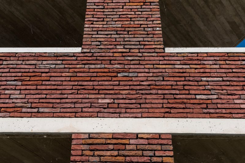 Стена аббатства в Вествлетерене с облицовкой кирпичом Terca Paarsblauw