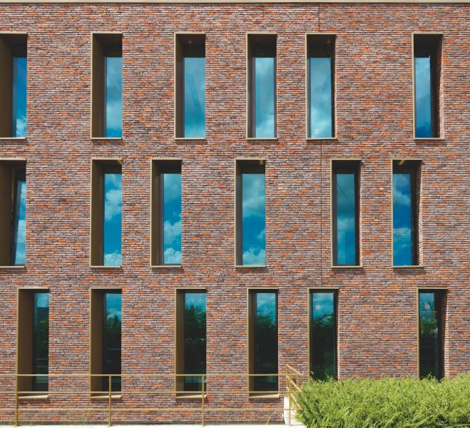 Офис банка с облицовкой миксом кирпича Terca Maaseiker Bont и Paarsblauw