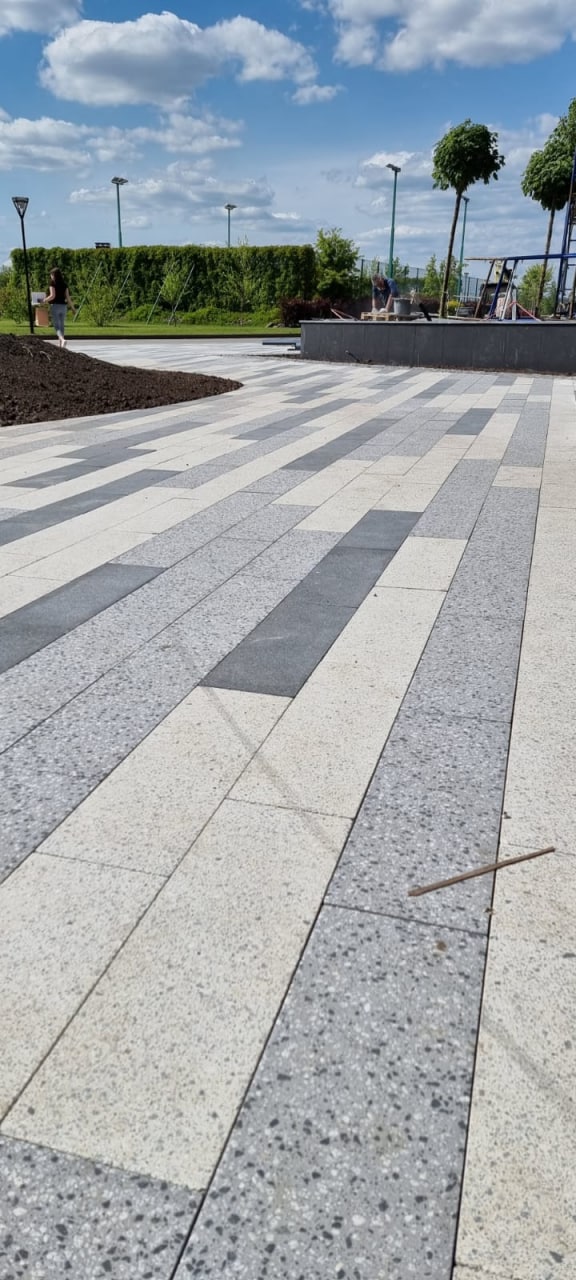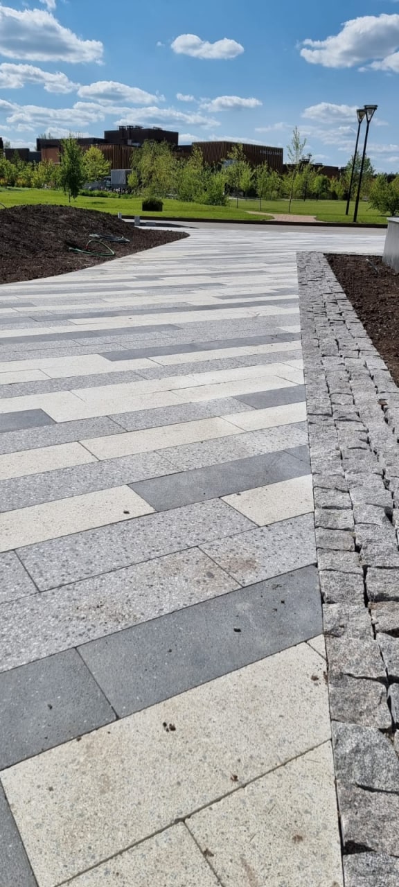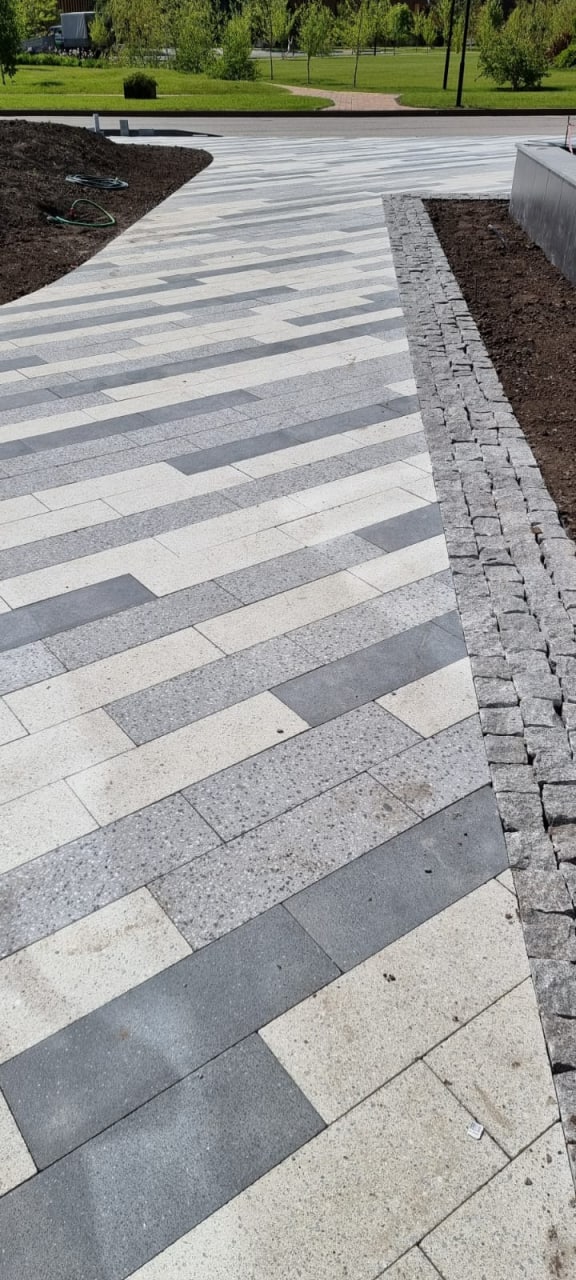 Плитка тротуарная Steingot Премиум, Плита, дробеструйная обработка, Bianco Nero, толщина 80 мм