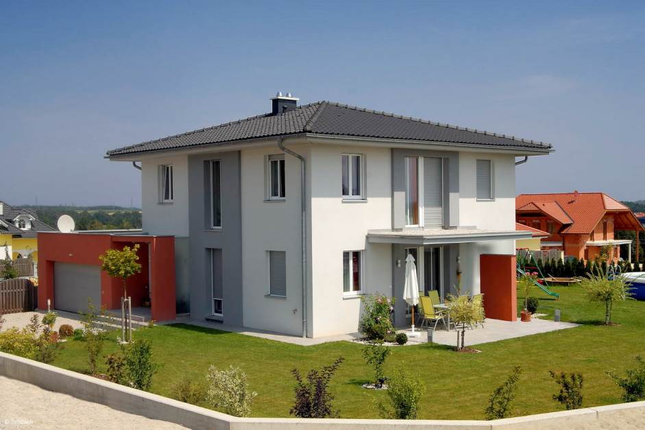 Двухэтажный жилой дом с черепицей TONDACH Sulm antracite engobe