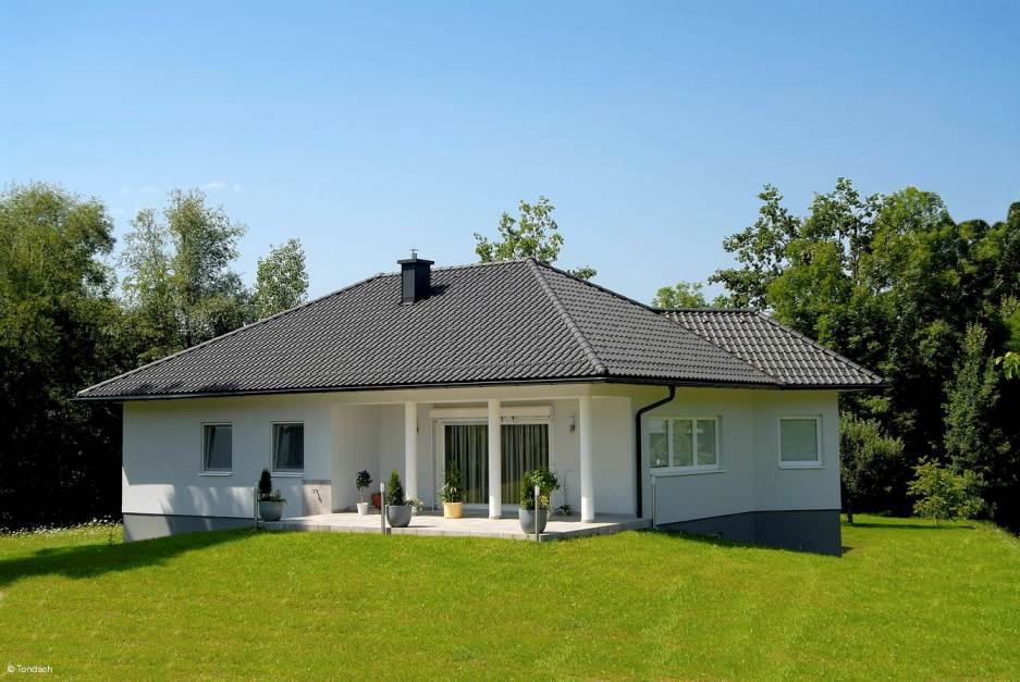 Одноэтажный жилой дом с черепицей TONDACH Sulm antracite engobe