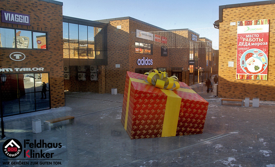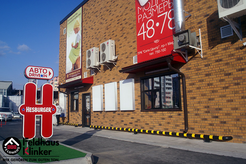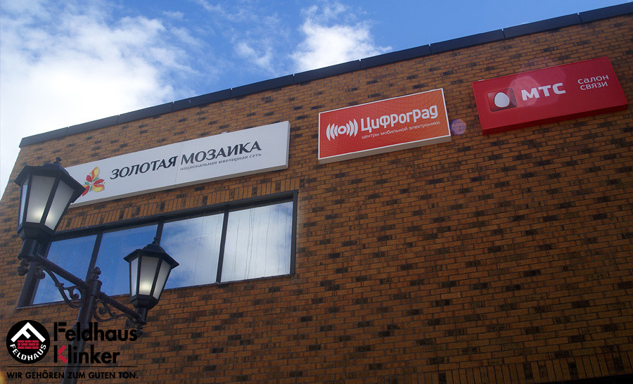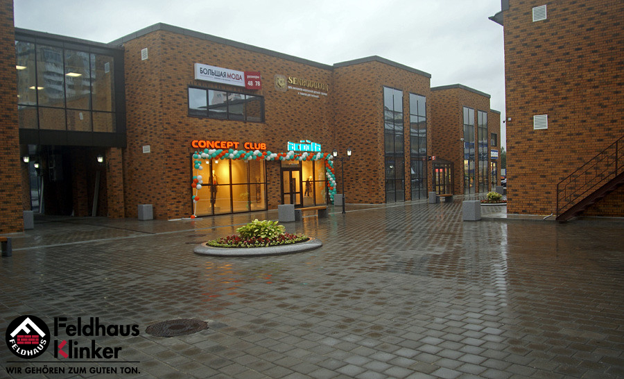 Торговый комплекс с облицовкой фасадной плиткой Feldhaus Klinker 286 nolani viva rustico carbo